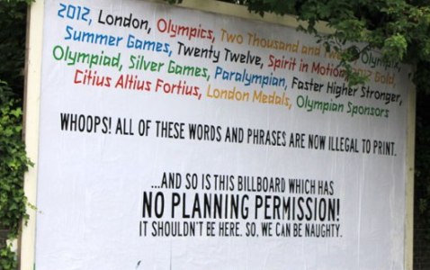 Další billboardy otevřeně protestovaly proti reklamnímu šílenství kolem Letních olympijských her.