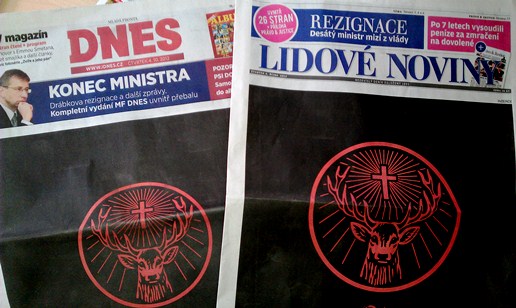 Na ukončenou prohibici reaguje inzeráty na titulní straně deníků Lidové noviny a MF Dnes značka Jägermeister.