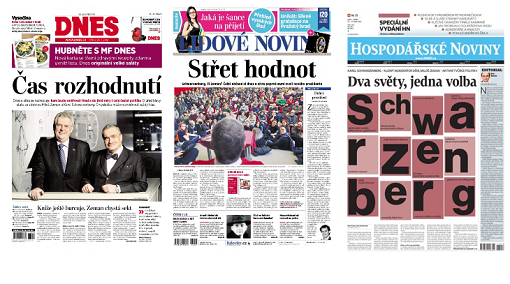 Šéfredaktoři většiny zpravodajských celostátních deníků se vyjadřují pro volbu Karla Schwarzenberga prezidentem republiky.