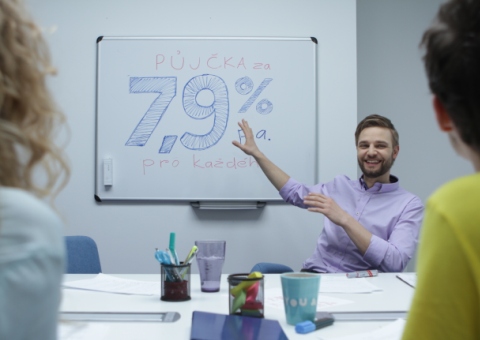 V nových reklamních spotech si banka utahuje z reklamních klišé, jako jsou úspěšní lidé s drahými auty, šťastná rodina, na kterou padají peníze z nebes, nebo roztomilá zvířátka. „U nás klišé v reklamách nenajdete. Řekneme vám to narovinu,” sděluje hlavní hrdina v reklamě, jež se zaměřuje na půjčku s úrokem 7,9 % pro všechny řádně splácející.