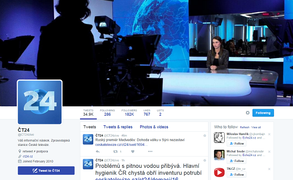 Nejsilnějším českým médiem na síti twitter je ČT 24, blíží se k hranici 200 tis. odběratelů.