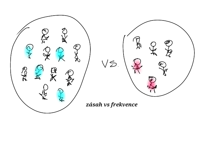 Povědomí o značce roste primárně díky dvěma faktorům. Dostatečným zásahem v cílové skupině a přiměřenou frekvencí reklamního sdělení. Přístupy k zásahu se různí. Jsou klienti, kteří razí cestu permanentní prezence značky s nízkou frekvencí, a naopak ti, kteří staví na kompromisu zásahu s podmínkou vyšší frekvence v cílové skupině. Tak či onak, je dobré vsadit na minimální hodnoty, které má smysl atakovat. Nemá smysl plánovat na nižší než 30% zásah v cílové skupině. Rozumná úroveň je 40 % a více, přičemž frekvence je klíčová.