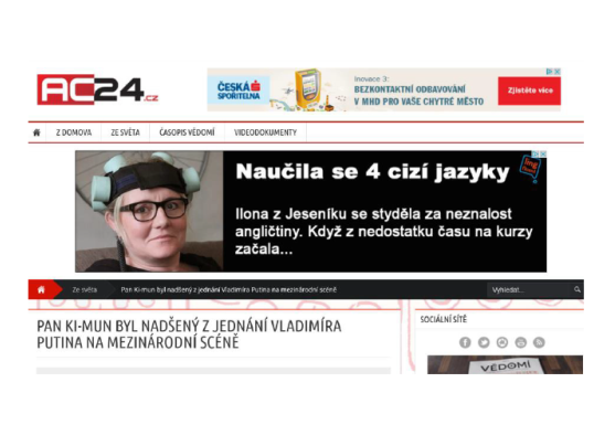 Inzerce České spořitelny se tak objevovala na webu ac24.cz, který mimo jiné své čtenáře na doporučení „ruských vůdců“ vyzýval k tomu, aby si „ihned vybrali peníze ze západních bank“. Kromě toho se ale zde objevily i články s titulky „Rakouská banka Erste Bank (majitelka České spořitelny) zavřela účet skupině proti masové migrace“ nebo „Matce České spořitelny se zhroutily akcie po odhalení 40% nárůstu mizerných dluhů a po rekordní ztrátě“.