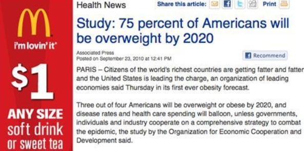 Studie: 75 procent Američanů bude mít v roce 2020 nadváhu