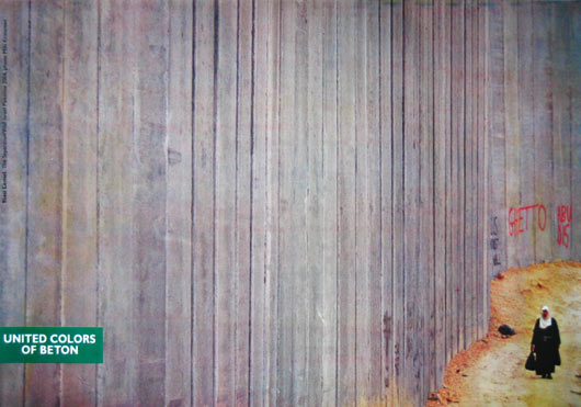 Izraelský grafický designér a aktivista Yossi Lemel podobně satiricky upozornil na oddělení Palestiny a Izraele betonovou zdí. Pohrál si se známým heslem značky Benetton („United Colors of Benetton“), který pozměnil na „United Colors of Beton“.