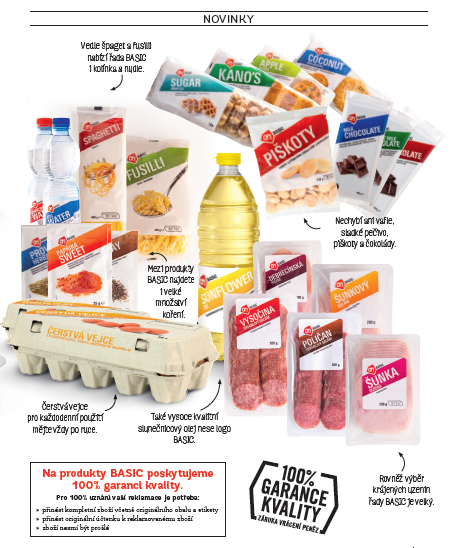 „Zákazníci pod značkou Basic najdou položky ze všech kategorií trvanlivých a čerstvých potravin, čisticí prostředky, drogistické výrobky i potřeby pro úklid, které jsou denně používány v domácnostech. Mezi tyto výrobky patří například mléko, mléčné výrobky, minerální vody, šťávy, těstoviny, rýže, ale také krmivo pro psy či hygienické potřeby,“ říká Judita Urbánková, ředitelka komunikace společnosti Ahold Czech Republic.