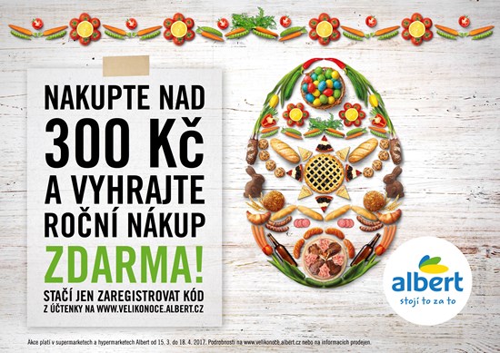 Do soutěže se je možné přihlásit s účtenkou nad 300 korun na stránkách www.velikonoce.albert.cz, kde jsou umístěna také podrobná pravidla soutěže či velikonoční tipy a nápady.