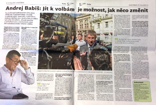 Na titulní stranu navazuje rozhovor, na stranách 2 a 3, ve kterém Andrej Babiš vysvětluje důvody, proč by voliči měli ve volbách podpořit jeho hnutí. Názory ostatních lídrů jiných politických uskupení se ve čtvrtečním vydání neobjevují.