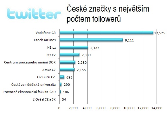 Nejzajímavější na žebříčku deseti nejpopulárnějších českých brandů na Twitteru není ani tak dominance Vodafonu, jako spíše rozdíl v počtu fanoušků mezi první a druhou částí tabulky.