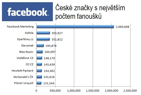 Nejúspěšnější domácí značkou na Facebooku je Kofola, která ze špičky odsunula dlouho nejpopulárnější e-shop Xparfémy.cz. Nejvíce fanoušků ale v tuzemsku server registruje pro marketingový projekt samotného Facebooku.