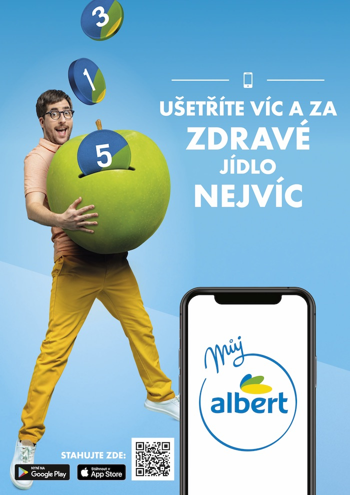 Obchodní řetězec Albert spouští kampaň na podporu své věrnostní aplikace, kterou v polovině dubna zpřístupnil všem svým zákazníkům. Kreativní ztvárnění demonstruje jednoduchost konceptu věrnostního programu, který odměňuje uživatele za nákupy, a navíc occeňuje volbu zdravých potravin. Získané kredity bude možné následně využít jako virtuální „měnu“.
