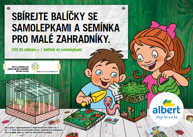 Obchodní řetězec Albert přichází 27. ledna s novou věrnostní kampaní Albertova zahrádka. Jejím cílem je ukázat dětem způsob, jakým se pěstují potraviny a inspirovat je ke zdravému životnímu stylu. Kampaň získala záštitu Ministerstva zemědělství.