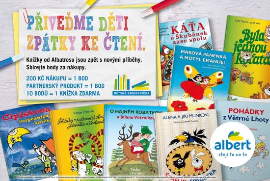 Obchodní řetězec Albert navazuje na loňskou sběratelskou kampaň „Dětská knihovnička“. Opět ve spolupráci s nakladatelstvím Albatros nabídne osm dětských knížek, které lze získat za deset nasbíraných bodů. Bod získají zákazníci za každých 200 korun nákupu nebo zakoupením partnerského produktu.