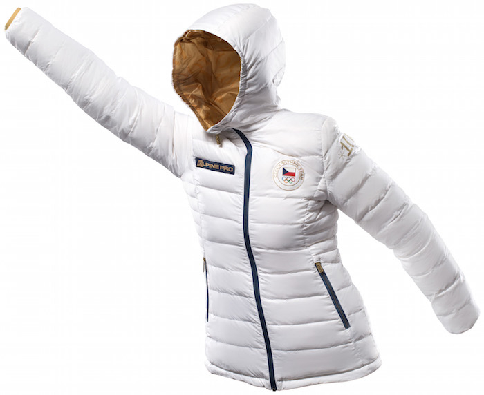 Dalším prvkem je batoh s voděodolnou pláštěnkou, vyvedenou v designu české národní vlajky, nebo oboustranná péřová bunda se zlatou podšívkou. „Inspirovali jsme se počinem týmu Evy Samkové po jejím vítězství na hrách v Soči, kde si všichni otočili bundu naruby a nechali vyniknout zlatou podšívku. Nyní je bunda z obou stran plně funkční. Sportovci si tak mohou vybrat, jaký barevný motiv budou nosit,“ doplnil Hrbek.