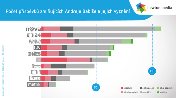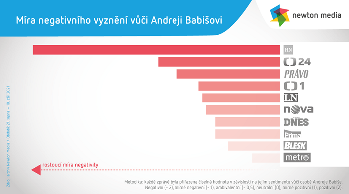 V období 21. srpna do 10. září 2021 byly sledovány příspěvky zmiňující Andreje Babiše v šesti tištěných denících (Mladá fronta Dnes, Lidové noviny, Metro, Blesk, Právo a Hospodářské noviny, přičemž první tři uvedené tituly patří do svěřenského fondu Andreje Babiše) a ve vysílání čtyř televizních kanálů (ČT 1, ČT 24, Prima a TV Nova). „Srovnáme-li objem publicity českého premiéra, vede TV Nova následovaná veřejnoprávní zpravodajskou stanicí ČT 24. Třetí místo zaujímá deník Právo následovaný Lidovými novinami a Mladou frontou Dnes. Na chvostu jsou naopak deníky Blesk a Metro, které se osobou premiéra zaobírají spíše okrajově,“ říká autor analýzy Jan Jüptner ze společnosti Newton Media.