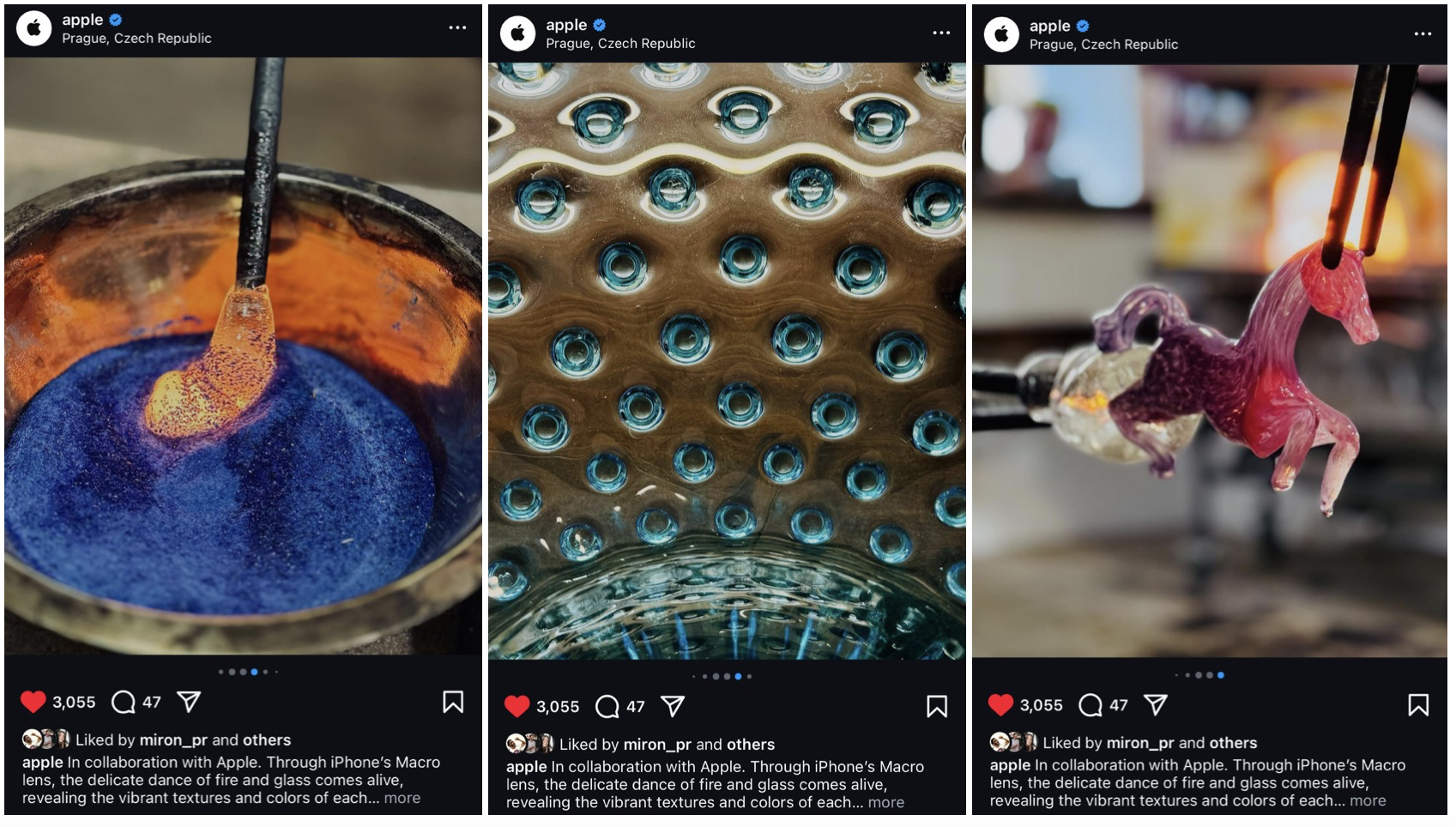 Americká značka Apple zveřejnila na svém instagramovém účtu fotografie dvou fotografů z Prahy – Jakuba Fišera a Matúše Tótha. Prostřednictvím fotoaparátu iPhone a makro a širokoúhlých záběrů zachytili umělecké předměty vytvořené českými skláři.