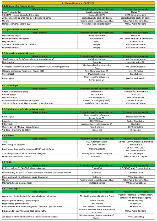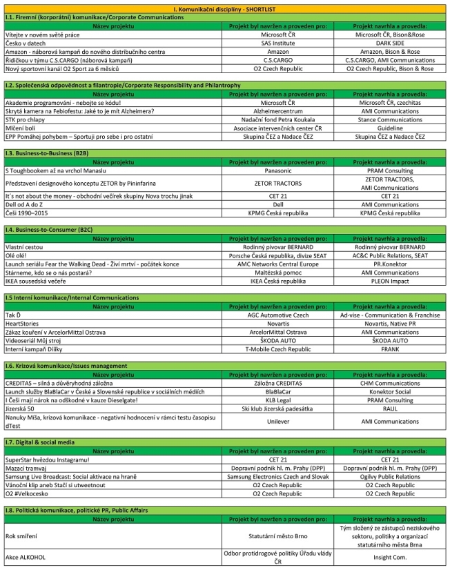 Asociace PR agentur (APRA) zveřejnila shortlist letošního 11. ročníku soutěže Česká cena za PR. Vítězové budou slavnostně vyhlášeni ve středu 15. června v prostorách City tower a Aureole.