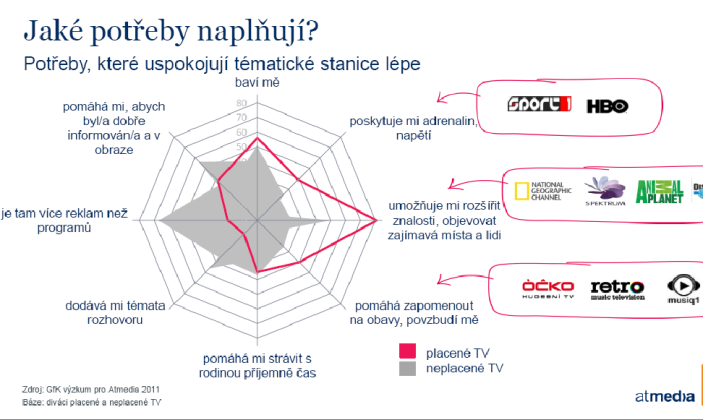 Počet tematických kanálů v Česku postupně stoupal, mezi lety 2009 a 2010 se zvýšil ze 66 na 74 stanic, v letošním roce se růst zpomalil na celkových 75 stanic. Vedle jejich rozšiřování Atmedia také očekává, že možnost příjmu více než 10 stanic v základní nabídce se zvedne ze současných 40 % na 50 %.