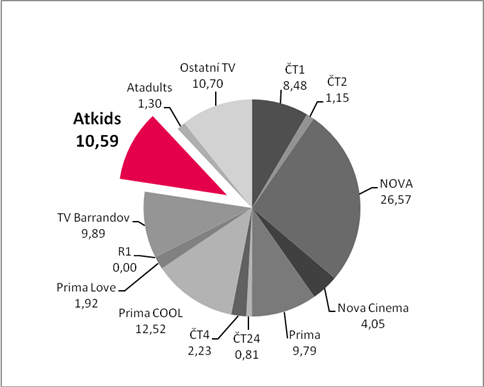 Skupina Atmedia, která zabezpečuje prodej reklamy na tematických televizních stanicích, představila výsledky sledovanosti v balíčku Atkids, kam spadají stanice Disney Channel a Minimax, za období letošního září. Výsledky ukazují, že podíl na sledovanosti u cílové skupiny dětí ve věku 9-13 let, který dosahuje 10,59 %, je na televizním trhu nejvyšší. Celodenní afinita dosahuje 1808 % a také doba strávená sledováním obou programů je u uvedených diváků nejdelší.