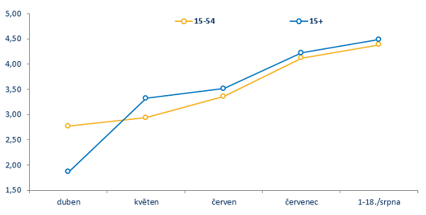 Od dubna zastupitelství tematických televizí Atmedia zvyšuje podíl na sledovanosti v obou dospělých prodejních skupinách 15-54 a 15+. Za první tři srpnové týdny dosáhla průměrného celodenního podílu 4,5% ve skupině diváků starších 15 let a o jednu desetinu méně u dospělých ve věku 15 až 54 let.