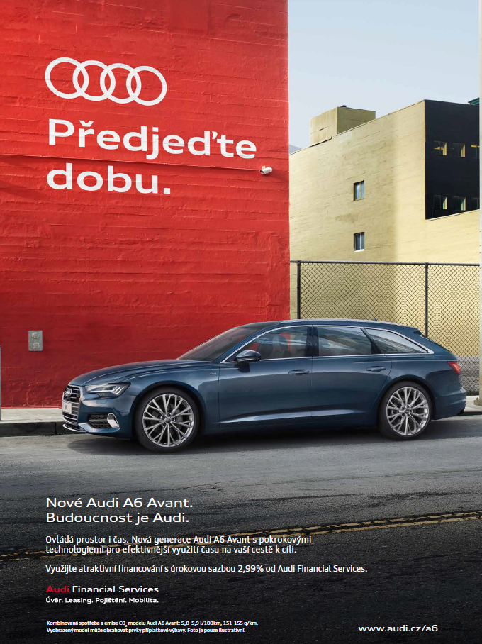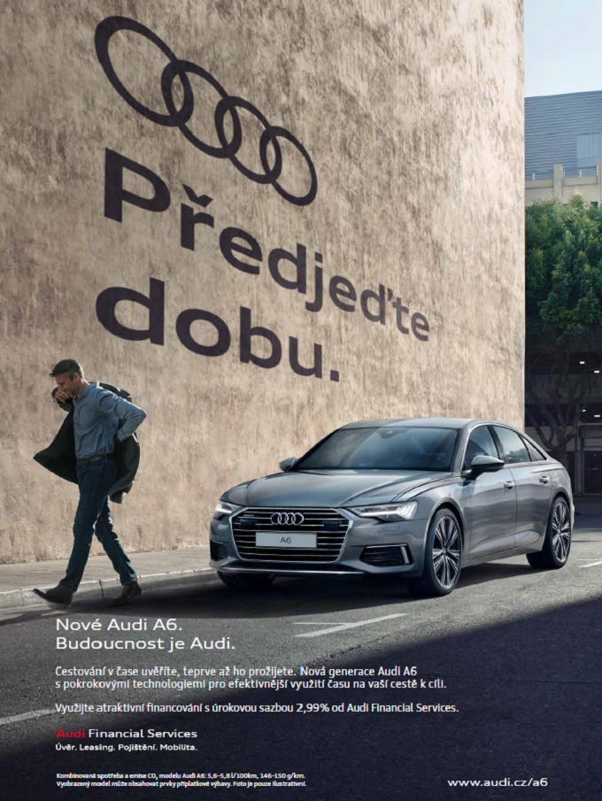 Automobilka Audi uvedla koncem června do prodeje vůz Audi A6. Od 16. července jej bude podporovat marketingovou kampaní s claimem „Předjeďte dobu“. Poprvé do komunikace také zapojí lokální tváře – české osobnosti, které ve svém oboru „dobu předjeli“.