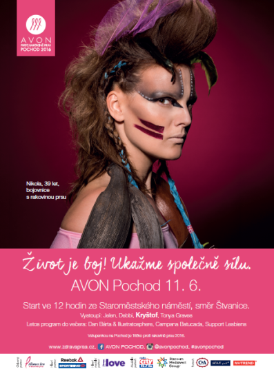 Avon pořádá 11. června již 16. ročník charitativního Avon Pochodu na podporu boje proti rakovině prsu. Akci už od začátku května komunikuje mediální kampaň se sloganem „Život je boj“, jež pracuje s tématem žen bojovnic.