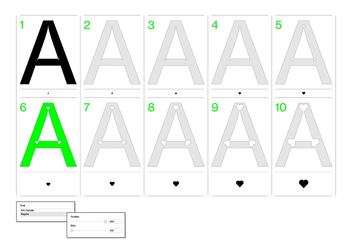 „Symbol srdce zde může asociovat a volně rozvíjet současné logo AVU používané od 90. let. V kontextu nové identity AVU jej však vnímáme mnohem obecněji – ať už jako znak, který se objevuje na pravěkých nástěnných malbách, tak jako symbol všeho, co může znamenat: pozitivního/negativního, vznešeného i nízkého, se všemi dobrými rozporuplnými konotacemi,” říká Robert Jansa ze studia 20YY Designers. Technické řešení písma má umožnit komukoliv jednoduše pracovat s proporcí a vizuální dynamikou kresby srdce. „Naším cílem je, aby písmo AVU Variable bylo volně dostupné všem, kdo jej chtějí jakkoliv používat,” dodává.