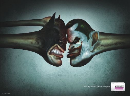 V další indické kampani se sloganem „Když se navzájem špatně třou“ (When they rub each other the wrong way) byl Batman nucen zapózovat spolu s Jokerem na podporu léků proti artróze. Kampaň připravila agentura Sorento Healtcare Communication.