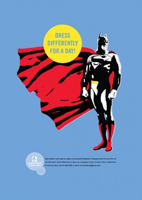 V sociální kampani pro dubajské Rashidovo pediatricko-terapeutické centrum se ve znamení sloganu „Oblečte se jeden den jinak“ (Dress Differently For a Day) Batman převlékl za Supermana, čímž upozorňoval na speciální donátorskou akci.