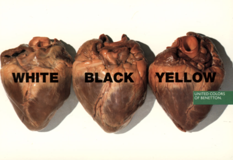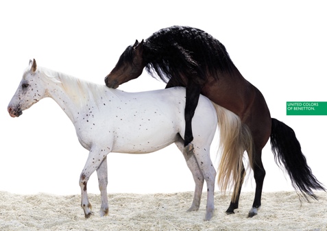Komunikační styl Benettonu utvářel od roku 1982 fotograf a interní kreativní ředitel firmy Olivero Toscani, autor knihy Reklama jako navoněná zdechlina, který se nikdy nebál tít do živého a otevírat palčivá společenská tabu. Sázel na šokující témata a jednoduchá fotografická ztvárnění, jež jakoby na okraj doplnil jednoduchým zeleným logem.