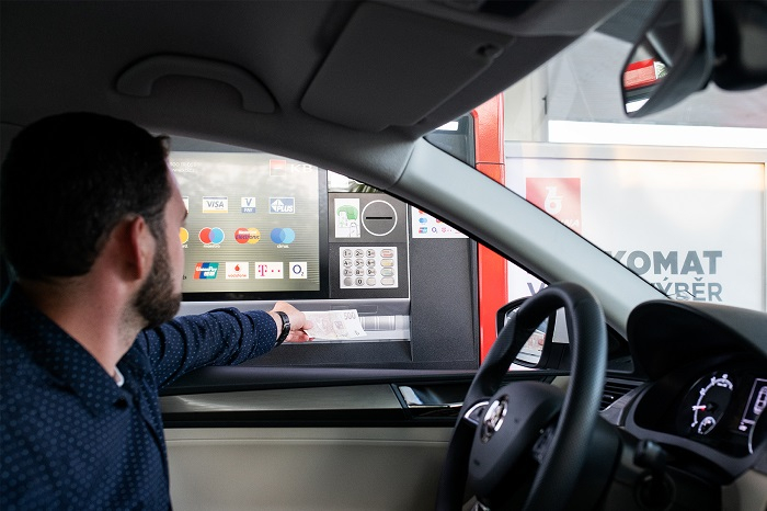 Bankomat je umístěn přímo mezi tankovacími stojany a umožňuje řidičům provádět i finanční operace přímo z okénka svého vozu. Bankomat Komerční banky je v provozu 24 hodin denně, sedm dní v týdnu. Kromě výběru hotovosti bude bankomat přijímat i vklady.