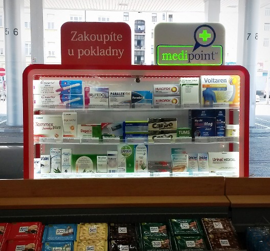 Benzina se spojila se značkou Medipoint a od konce července postupně spouští na vybraných čerpacích stanicích prodej volně dostupných léčiv, jako například Paralen, Kinedril, Nurofen a Visine. Jde zejména o léky, které mají pomoci s akutní bolestí, teplotou nebo nevolností. Celkem je v sortimentu čerpacích stanic Benzina 15 druhů vyhrazených léčiv (specifikované zákonem), dále 20 dalších přípravků a potravinových doplňků.