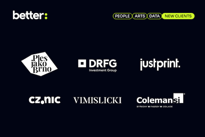 Řady klientů agentury Better se rozrůstají. Nově mezi ně patří Ples jako Brno, DRFG Investment Group, Justprint, Coleman S. I., Vimislicky a CZ.NIC.
