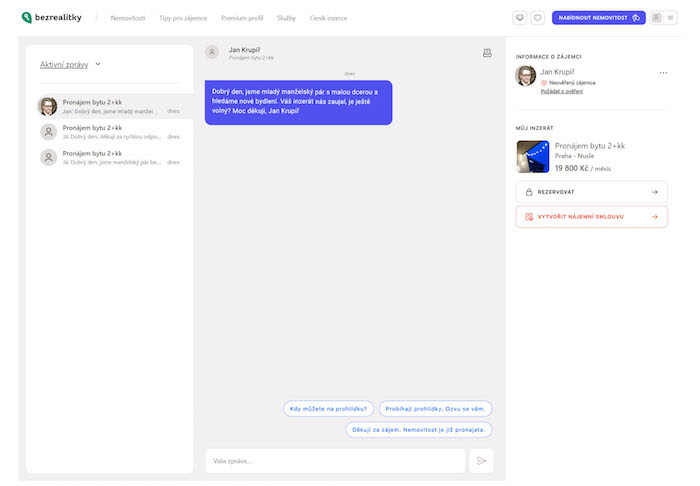 „Vzhledem k tomu, že majitelé často komunikují s několika desítkami zájemců, se chceme zaměřit na možnost vytvářet si v konverzacích vlastní systém pomocí tagů a poznámek. Komunikační platforma zároveň nyní ukazuje u každé konverzace plný informační profil zájemce, takže přesně vidíte, s kým komunikujete, i to, zda má ověřenou bezdlužnost,” vysvětluje Jan Škrabánek.