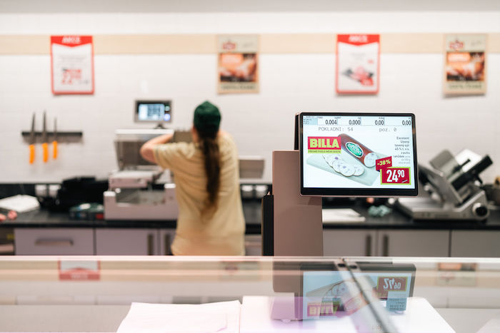 Nové barevné schéma má zákazníkovi ukázat, kde na něj čekají nejatraktivnější nabídky. Mezi světlým dřevem a přírodní zelenou se vypíná červená barva, kterou se v prodejně označují výhradně akce a slevy. Červená barva u promo nabídky zároveň zůstává součástí chladicích boxů.