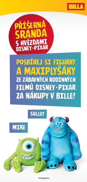 Maloobchodní řetězec Billa spouští novou sběratelskou kolekci. Tentokrát v ní zákazníci sbírají s každým nákupem nad 250 korun tzv. minibody, které mohou následně vyměnit za postavičky Disney/Pixar. S nimi získají i maxibody, za které mohou získat plyšáky postaviček Mikea a Sulleyho z filmu Příšerky s. r. o.