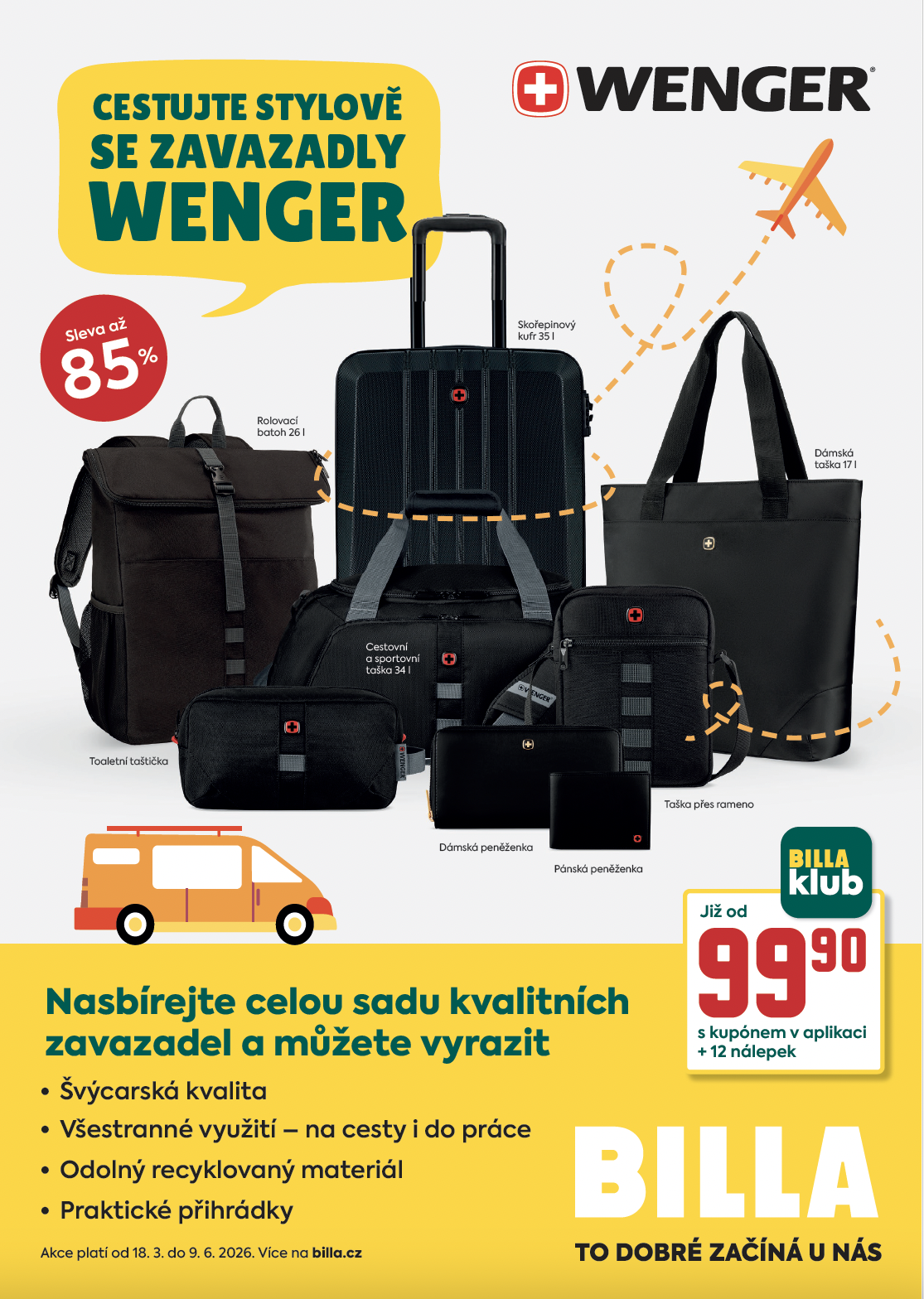 Billa přichází od 18. března s novou věrnostní kampaní, v níž nabízí švýcarská zavazadla značky Wenger.