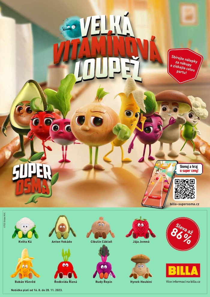 V druhé polovině srpna zahajuje Billa novou věrnostní kampaň. Zákazníci za své každodenní nákupy dostanou samolepky, které mohou následně proměnit za jednoho z hrdinů vitamínové party SuperOsma a symbolický doplatek. Nově bude také možné soutěžit o ceny v online hře.