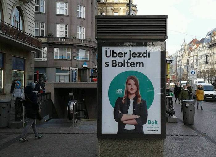 Přepravní aplikace Bolt, dříve známá jako Taxify, spustila v Praze novou kampaň. V ní využívá sloganu „Paní Uber jezdí Boltem“, který je k vidění na venkovních plochách.