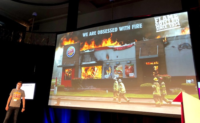 Značka Burger King je ve své komunikaci dlouhodobě výrazná. Loni si v Cannes kupříkladu za své vizuály zobrazující její restaurace v jednom ohni odnesla Grand Prix a nejvyšší ocenění si vysloužila i v roce 2016 za kampaň McWhopper.