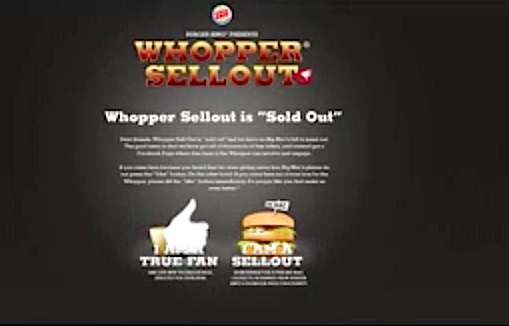Na nově vytvořených facebookových stránkách dal fanouškům na výběr dvě možnosti: buď se prohlásit za opravdového fanouška whoppera, nebo si vzít od Burger Kingu poukaz na nákup hamburgeru big mac, který vyrábí konkurenční McDonalds, hlavní rival Burger Kingu. Fanoušci, kteří dali přednost konkurenci, mají ale na facebookové stránky Burger Kingu zakázán vstup.