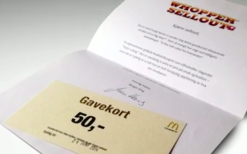 Řetězec rychlého občerstvení Burger King se v Norsku rozhodl velmi riskantně otestovat loajalitu svých fanoušků na facebooku, aby eliminoval ty, kteří nevyznávají pravou lásku k nabídce Burger Kingu a nejsou pravými vyznavači burgeru whopper.