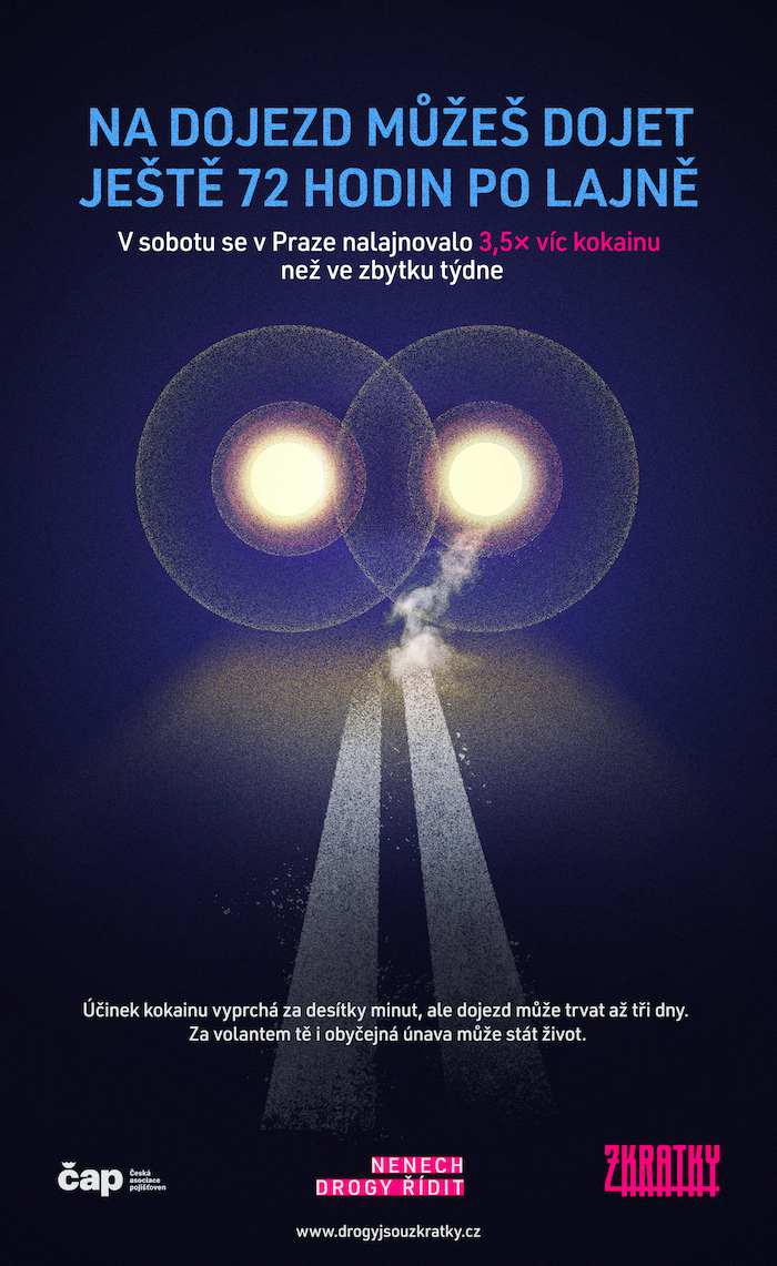 Česká asociace pojišťoven (ČAP) představuje novou fázi kampaně Zkratky, jež bojuje proti užívání drog. Využívá v ní data z odpadních vod k tomu, aby varovala řidiče a řidičky v konkrétních lokalitách a tehdy, kdy je to nejvíce potřeba.