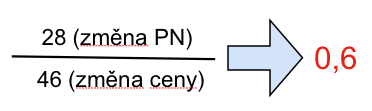 Dalším ukazatelem o dopadu cenových úprav na výši prodaného nákladu je výpočet cenové pružnosti poptávky. Ta udává podíl procentuální změny prodaného nákladu a změny prodejní ceny, která se pro tyto účely vyjadřuje podílem rozdílu ceny původní a nové a jejich průměrem. Stál-li tedy Instinkt před změnou 32 Kč a po ní 20 Kč, vypočítá se jako 12/26, což představuje 46% snížení. Nárůst prodaného nákladu (z 23,4 tis. na 30 tis.) znamená 28% zvýšení. Cenová pružnost poptávky (28/46) má tak hodnotu 0,6. Protože je nižší než 1, znamená to, že tato změna se na poptávce projevila nepružně, čili na úroveň prodaného nákladu měla malý vliv.