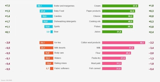 Loni dosáhl podíl všech prodejů v FMCG rekordních 27 % (co do prodaných kusů pak privátní značky tvoří skoro 40 %) a stále mírně roste, i když se vývoj a jeho dynamika liší v jednotlivých kategoriích.