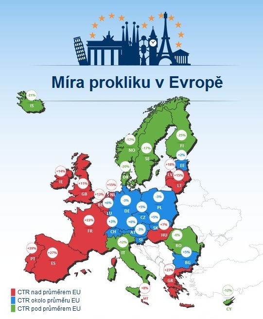 Česko patří spolu se sousedními zeměmi k bloku států, které se pohybují v hranicích průměru. Tuzemská míra prokliku je konkrétně o 5 procent vyšší.