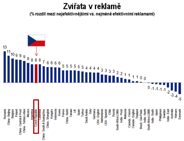 Rovněž Češi ocení v reklamě zvířata, což mají podobné s Rumuny, Poláky nebo třeba s Číňany.