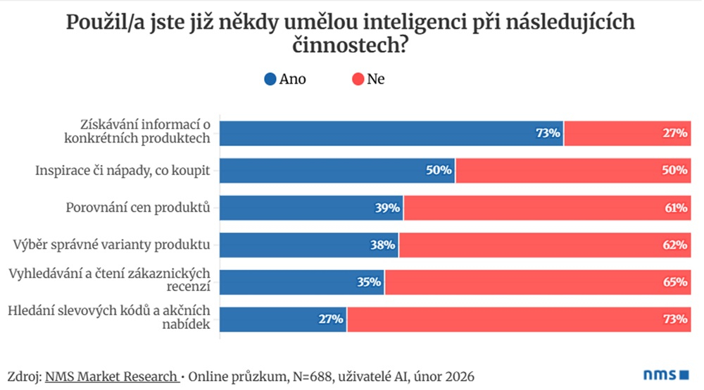 Navzdory rostoucí popularitě chatbotů je třeba dodat, že v žádné ze sledovaných aktivit AI během nakupování klasické internetové nástroje zatím nepřekonala. Vyhledávače, srovnávače cen nebo recenzní portály jsou stále výrazně preferovanou volbou.