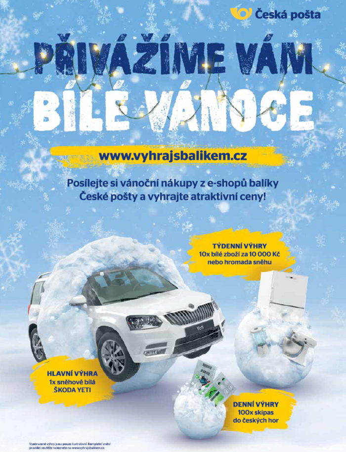 Česká pošta spustila vánoční kampaň, jež staví na soutěži o ceny. Jejím cílem je podpora využívání stěžejních služeb balíkového portfolia a některých jeho novinek. Zároveň má posílit pozici České pošty jako přepravce při nákupech v e-shopech, a to opakovaně. Česká pošta na druhou stranu od nového roku opouští trh distribuce předplacených novin.