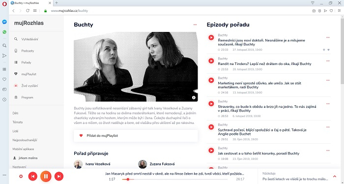 obsahuje všechny audio pořady Českého rozhlasu.